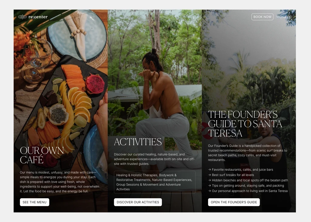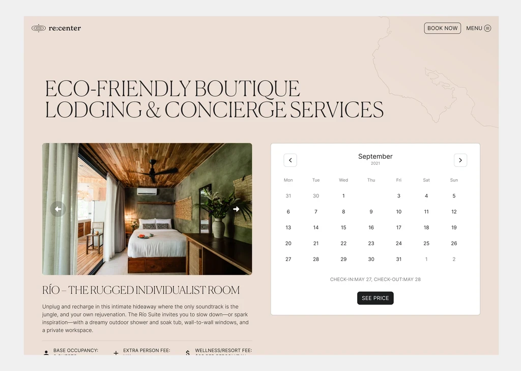 Re:center is a luxury retreat designed for modern travelers, offering seven unique room types and a cutting-edge wellness club. Guests can enjoy chef-crafted, healthy meals and have their stay personalized by a dedicated concierge team. The retreat focuses on intentional details to provide a restorative and rejuvenating experience.